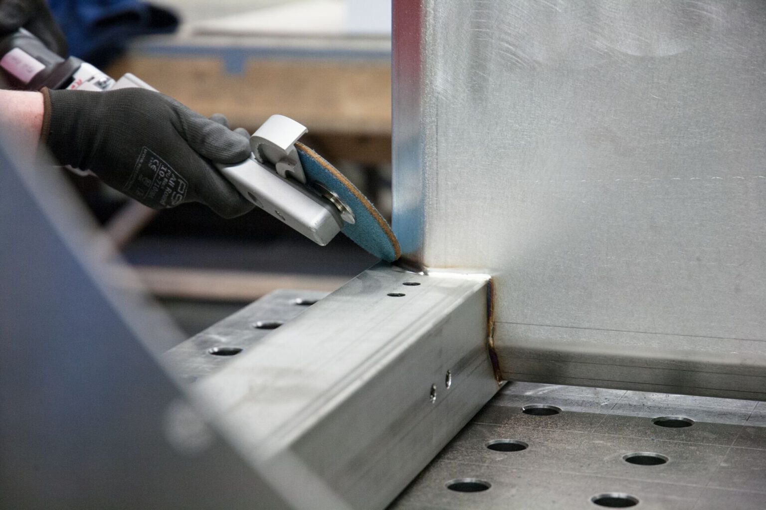 Durch den langen Arm bietet der Finit-Easy guten Zugang und große Bewegungsfreiheit an schwer zugänglichen Stellen und engen Ecken im Geländer- und Behälterbau.